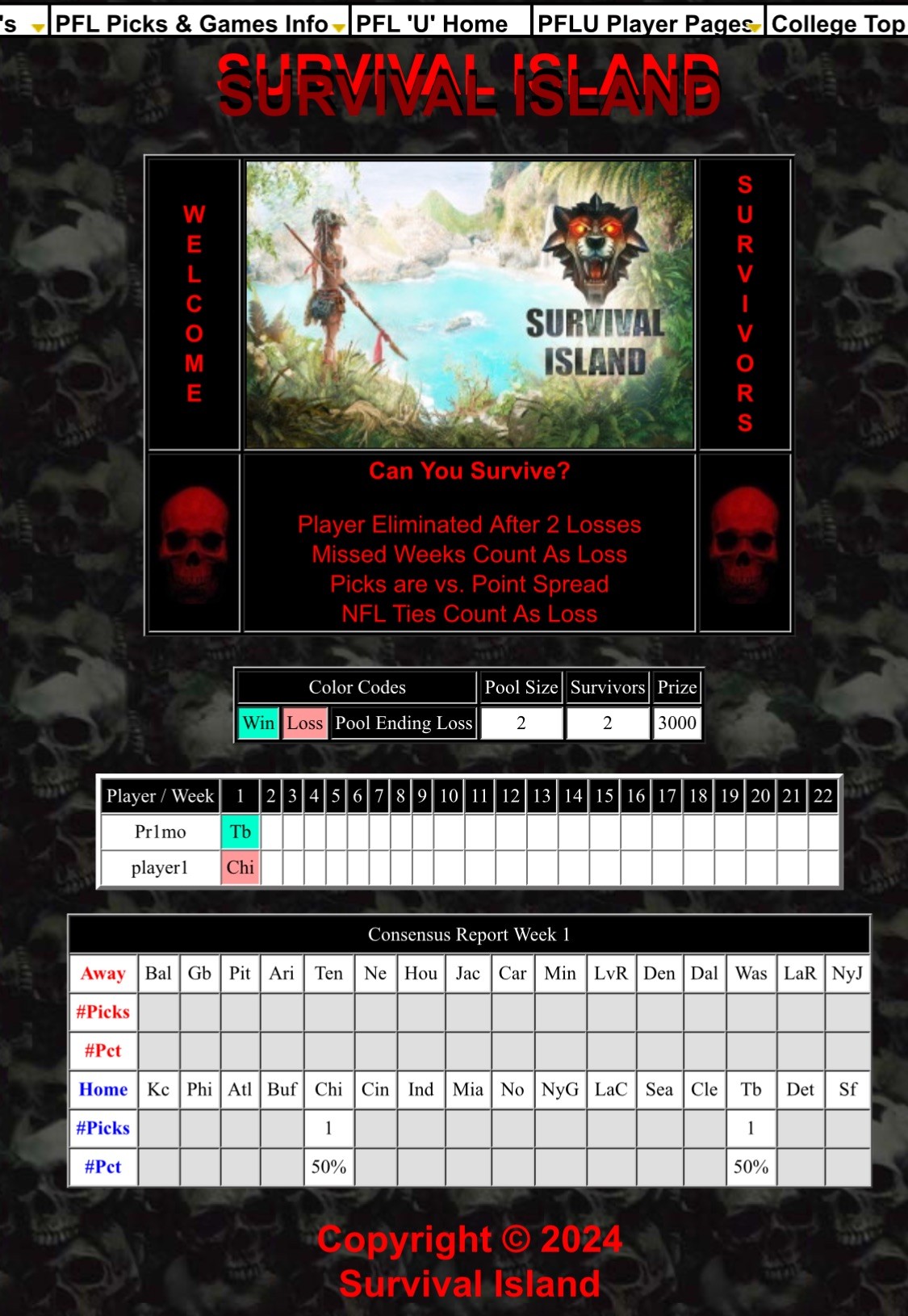 All picks and stats will be kept on our website (pfl.us) or mobile link (pfl.us/mobindex.htm)